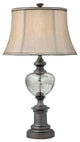 Standard Lamp Specifications for #GMG985:Product Type: Table LampHeight: 30"Finish: Gunmetal and Mercury GlassConstruction: Steel/GlassSocket: (1) Aluminum 3-way Med. Base Type A 150W Max socket(s). (Bulb(s) not included)Switching: (1) 3-way turn knob switch(es) located on the socket.Cord: 6''5'' (from base) long clear silver SPT-2 cord set with a 2 prong polarized plug.UL/CUL and/or ETL listed: YesHarp Size: 8.5 inches (including the saddle)Standard Packing: 2 per carton (shade packed separately).Lamps & Shades per SKU: 1Lamping: (1) Aluminum 3-way Med. Base Type A 150W Max socket(s).Shade Size and Description: Grey Silk Drum bell shade with Black underfold trim measuring 13" x 17" x 11" w/ .5" drop (Top x Bottom x Slant).Bulb Included: NoMaterial Description: constructed from polished, plated, and lacquered hand-spun steel with mercury glass fount.