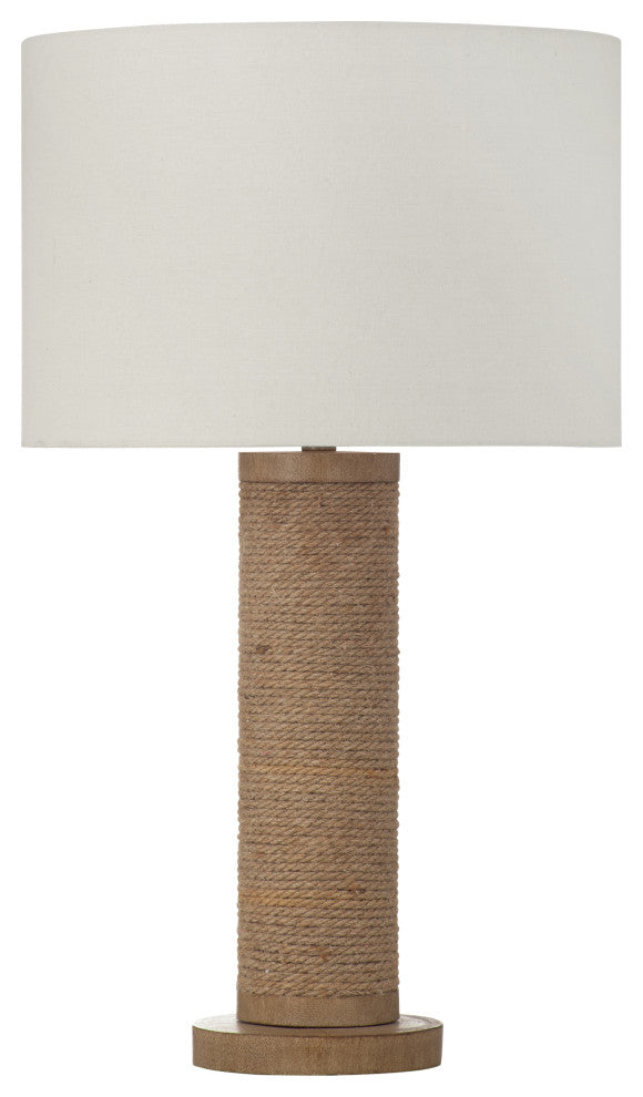 The Adams Table Lamp effortlessly merges boho design with coastal aesthetics, featuring charming rope detailing and a linen drum-style shade. Its modern yet inviting look adds a touch of warmth to any room. Ideal for bringing a relaxed, beachy feel to your living space, this lamp offers both style and functionality. With its understated elegance, the Adams lamp is a versatile addition to your home decor, providing soft, ambient lighting for cozy evenings or productive work sessions. Trustworthy and timeless, it enhances your interior with a touch of coastal charm and bohemian flair.