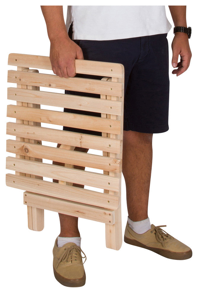 This sturdy cedar Square Folding Table from Shine Company is the ideal complement to your Adirondack furniture set. This unfinished table can be stained or painted to perfectly match your home decor. It is strong enough to withstand the elements without sacrificing the classic look you love. Made for indoor or outdoor use, the 19-inch surface provides ample space for books, laptops, or a relaxing glass of wine. Plus, it comes with the added convenience of folding flat for easy transportation or storage during the harsh winter months. Rust-resistant hardware; no assembly required.