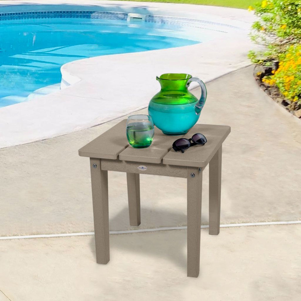 Enhance your outdoor space with this classic side table, designed to complement any seating arrangement, whether paired with a porch bench or Adirondack chair. Crafted from low-maintenance, eco-friendly HDPE poly lumber, this table is built to last and offers both durability and sustainability. Backed by a 12-year residential warranty, it promises years of reliable use. Its compact size makes it perfect for holding drinks, books, or other essentials while you unwind. Available in a variety of sun-soaked colors, it seamlessly blends with Bahia Verde furniture, adding both style and cohesion to your outdoor decor.