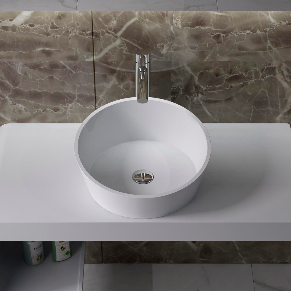 ADM Circular Countertop Vessel Sink, White, 17", Matte White