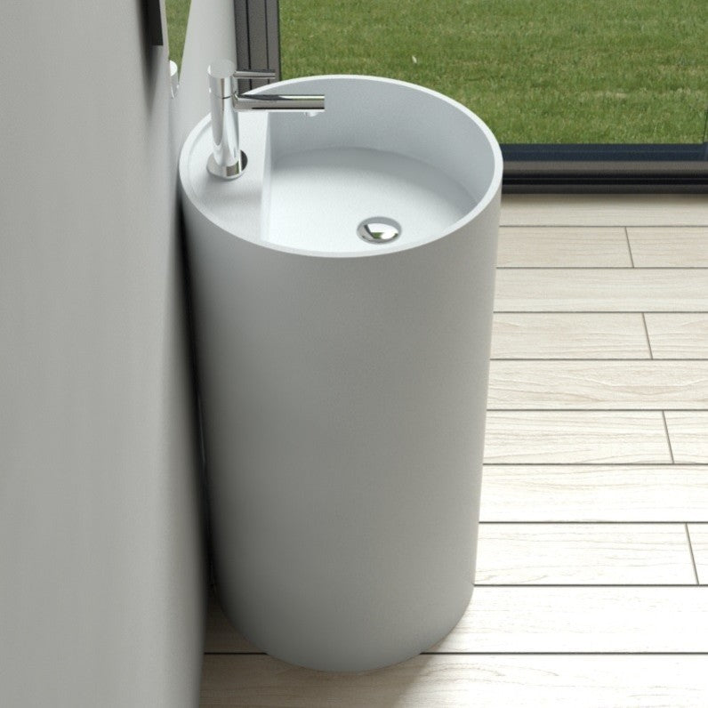 ADM Curved Freestanding Pedestal Sink, White, 18", Matte White