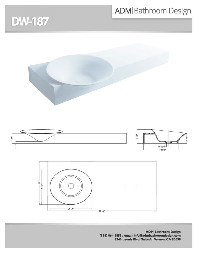 The DW-187 is a great looking sink made of durable white stone resin composite with a large circular shape and contemporary style design. The stone resin material comes in a matte finish. This counter mounted sink will surely be a great addition to your already stylish bathroom. This sink will add a clean and modern touch to your new renovation with its elegance and high-quality construction.