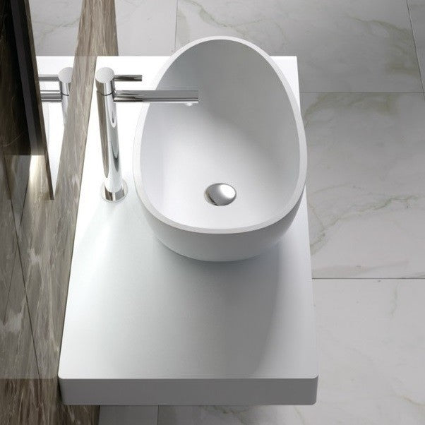 ADM Oval Countertop Vessel Sink, White, 24", Matte White