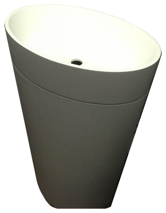 ADM Oval Freestanding Pedestal Sink, Grey/White, 24", Glossy Gray/White