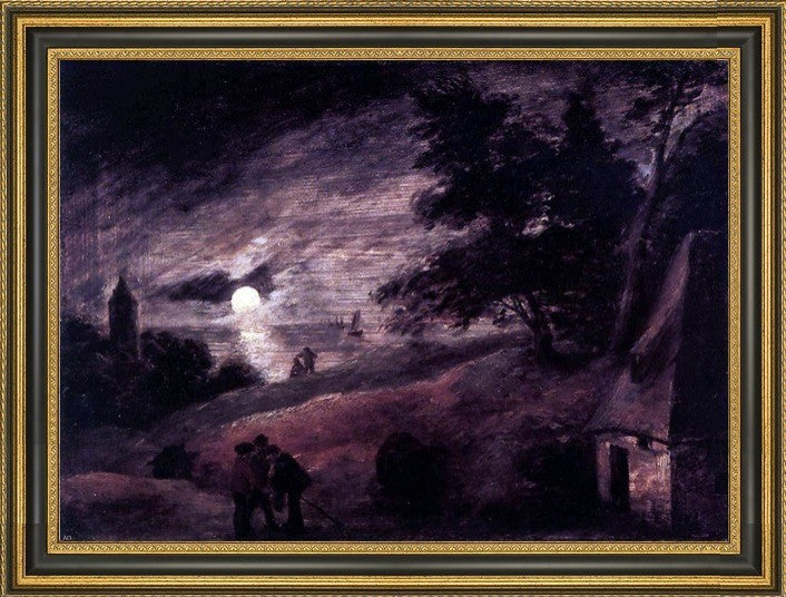 Adriaen Brouwer Dune Landscape by Moonlight Framed Premium Canvas Print, 16"x24"
