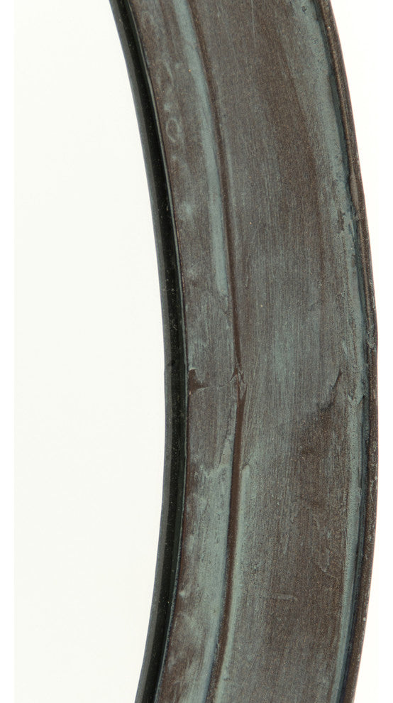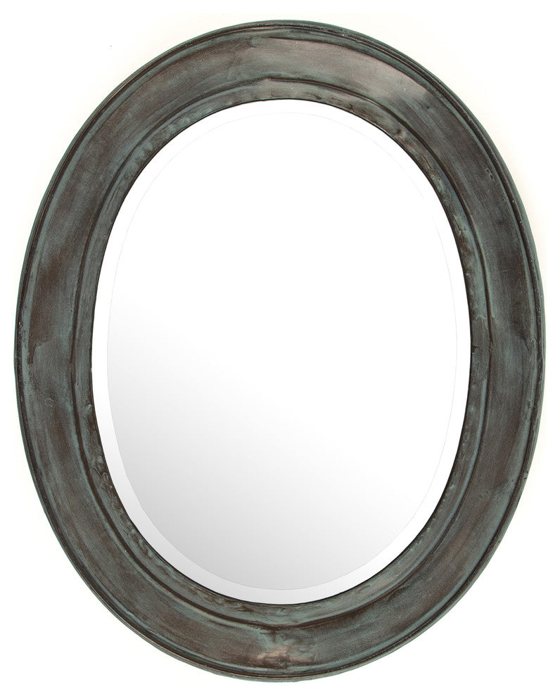 The Adrienne mirror is an elliptical mirror with a weathered green frame.