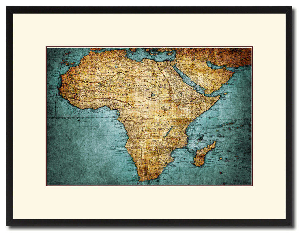 Africa Mapmaker Vintage Map Print On Canvas With Picture Frame 16" X 21"