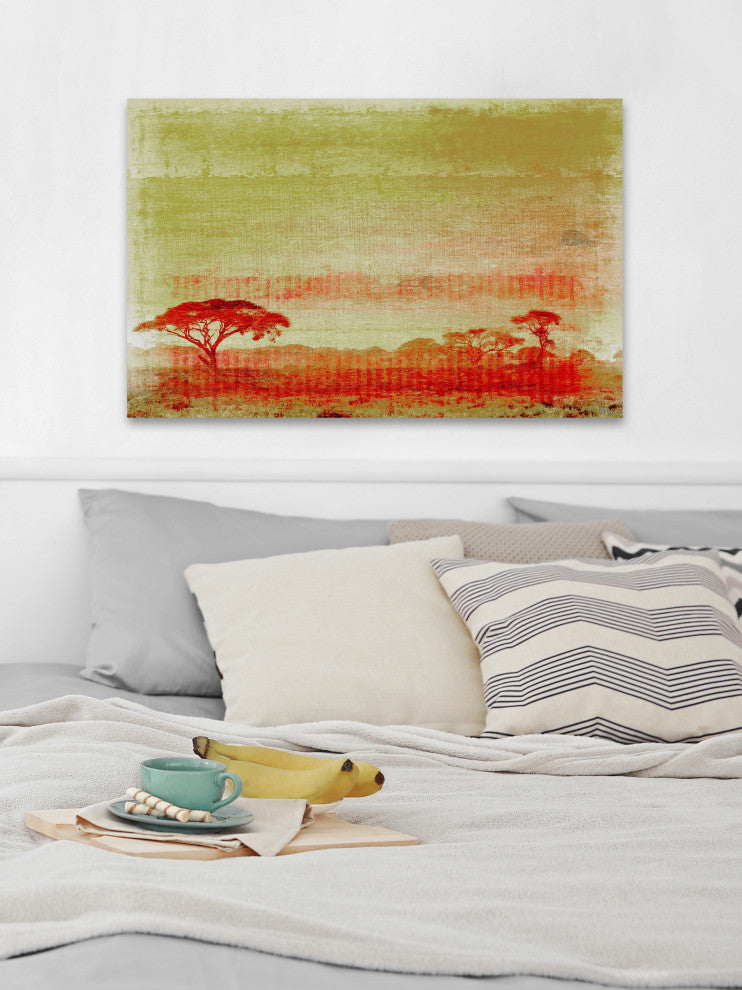 Striking and unique, the "Africa" Print on Canvas by Parvez Taj will bring your walls to life. Printed on canvas, this 18 inch wide by 12 inch tall contemporary artwork will make a statement in any living room, dining room, or bedroom.- Fine art canvas print by Parvez Taj- Professionally hand stretched- Gallery wrapped in sustainable, non-warping wood- Arrives ready to hang- Made in the USA- Includes a certificate of authenticity- Artist signature on the front