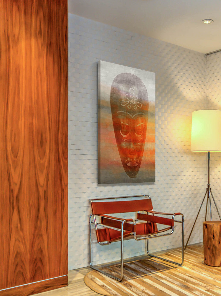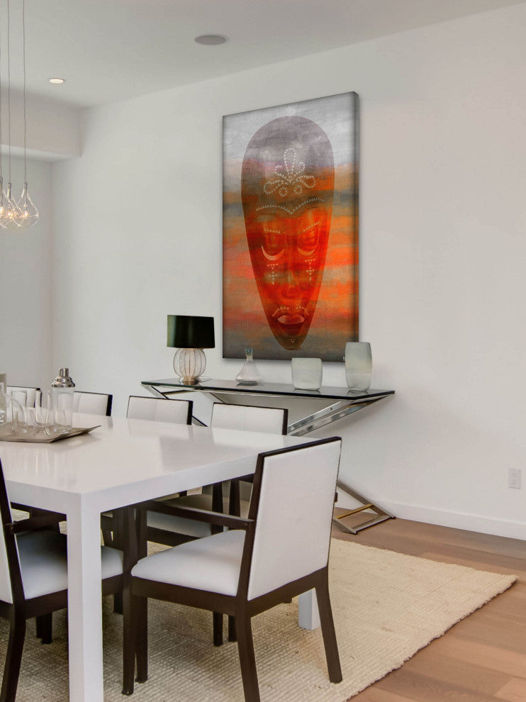 Striking and unique, the "African Mask" Print on Canvas by Parvez Taj will bring your walls to life. Printed on canvas, this 22.5 inch wide by 45 inch tall contemporary artwork will make a statement in any living room, dining room, or bedroom.- Fine art canvas print by Parvez Taj- Professionally hand stretched- Gallery wrapped in sustainable, non-warping wood- Arrives ready to hang- Made in the USA- Includes a certificate of authenticity- Artist signature on the front