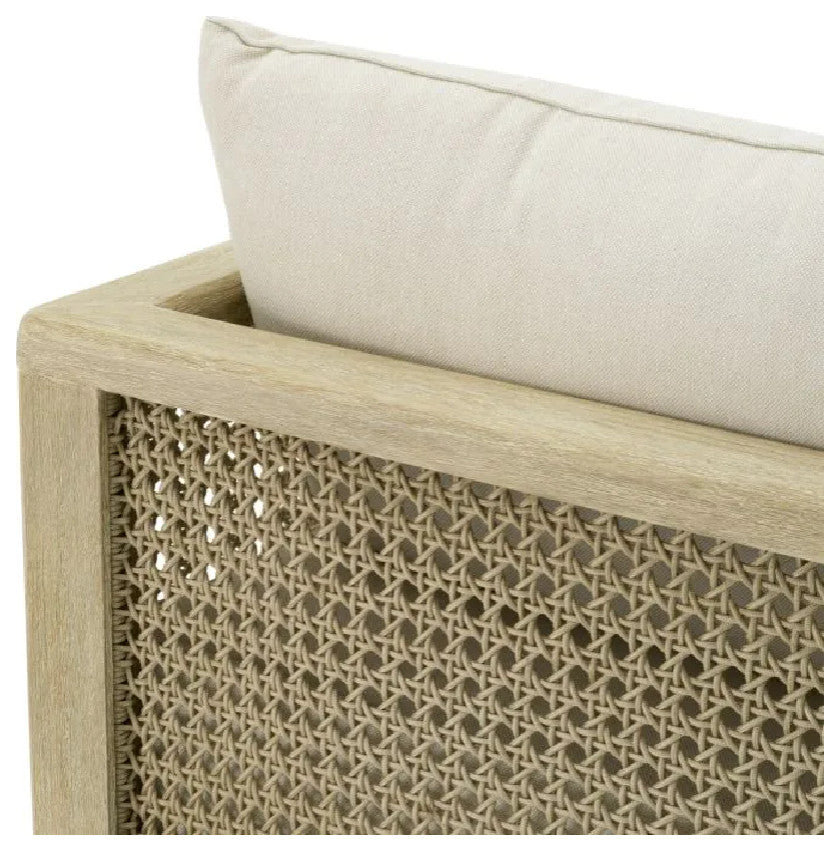 Showcasing aged teak in a refined grey tone, paired seamlessly with the plush viola sand fabric, this chair embodies luxury. Its sophisticated design and premium materials make it a stunning choice for those who cherish style and comfort in outdoor furnishings.