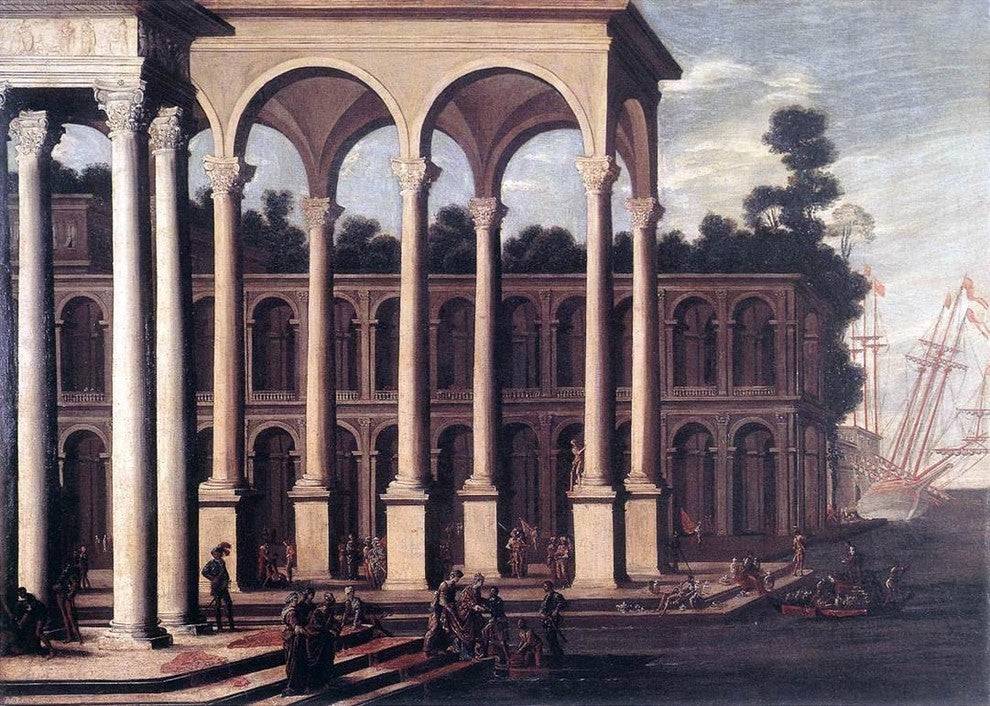 Agostino Tassi The Embarkation of a Queen - 18" x 27" Premium Canvas Print