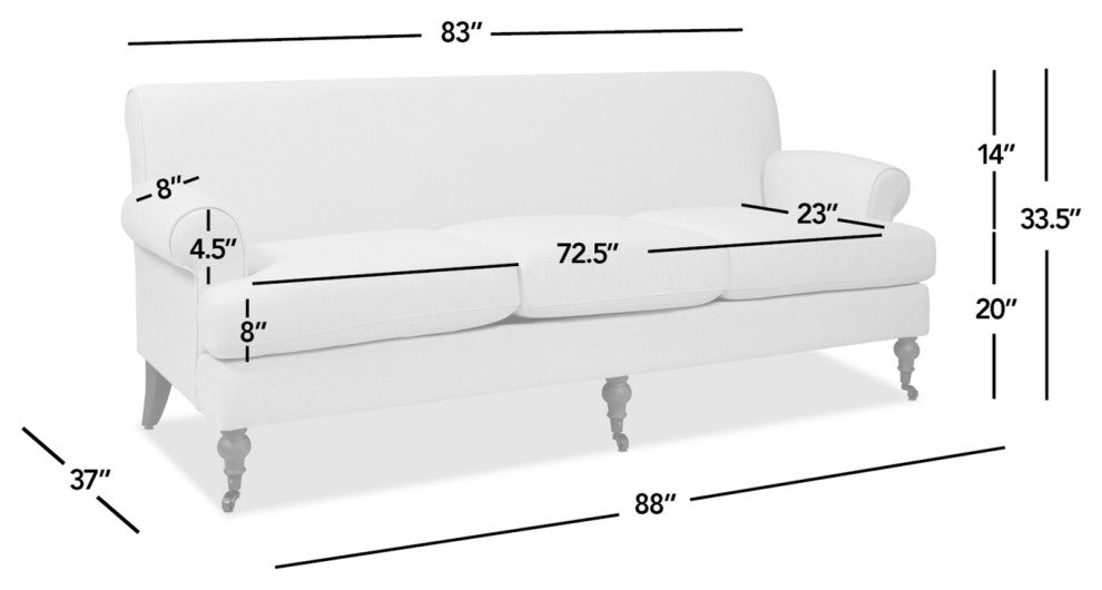 The Alana Seating Collection by Jennifer Taylor Home is American country refinement and comfort at its best. The iconic Lawson style is reimagined with fluffy seat cushions, a tight back, and gently rolled recessed arms. Pretty enough to be dressed up in a sitting room yet comfortable for lounging and relaxing, the Alana is perfect for any space in the home. Featuring removable and reversible seat cushions for versatility, and solid wood legs with front casters for mobility. See the complete collection for the matching sofa and armchair.Features:- Bench-made home furnishing products carefully hand-built by experienced craftsmen and women-A sturdy frame of kiln-dried solid hardwood and 11-layer plywood for strength and support that will last- Upholstered in high-quality woven fabric atop premium high-density flame-retardant foam for a luxurious medium-firm feel- High-strength sinuous spring suspension for long-lasting comfort and support- Removable and reversible seat cushions- See the Alana collection for matching seating including sofa and armchair- French Country, Classic, Farmhouse, Transitional stylesSpecifications:- Dimensions: 88"W X 37"D X 32.5"H- Seat: 72"W X 23"D X 20"H- Seat Back Height: 14"H- Arm Height: 24.50"H- Seat Foam Thickness: 6"- Weight: 105 LBS- Weight Capacity: 600 LBS- Number of Shipping Boxes: 1- Minimal assembly required "“ Leg attachment only- Care Instructions: Dry clean or spot clean only