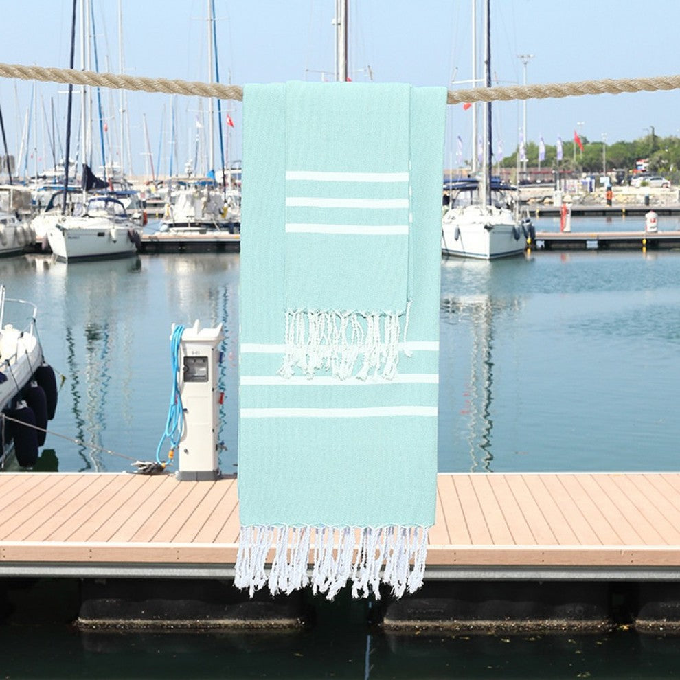 Alara Turkish Pestemal Beach Towel Set, Soft Aqua/White Stripes
