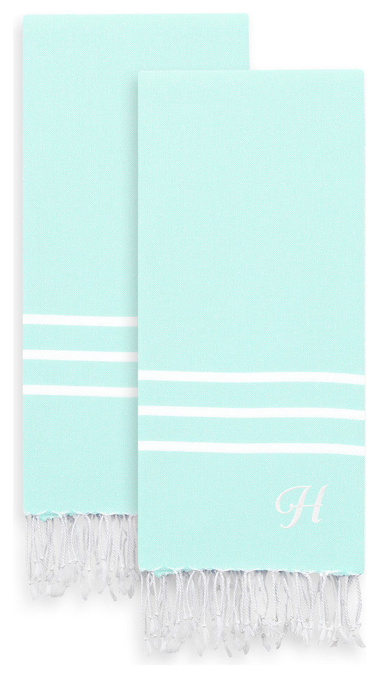 Alara Turkish Pestemal Hand Towels, Set of 2, Soft Aqua, H