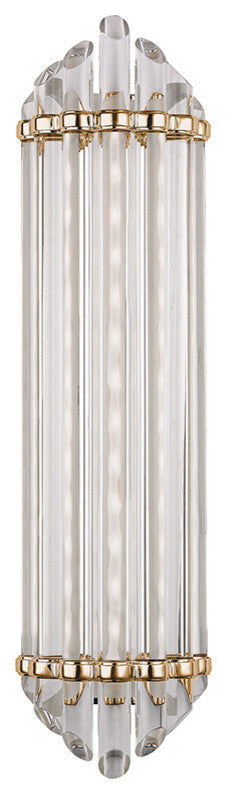 Fluted cast metalwork clasps Albion''s shimmering array of polished glass rods. The broad rods, beveled on each end, are arranged in tapering order before a glass diffuser. A powerful LED driver marries Albion''s twentieth century glamour with the energy-efficient technology of today.Specifications:Included backplate measures as 20.25" High x 4.5"WideRequires 1 x 16.8-watt LED module (Integrated)Voltage - 1201400 Lumens, 90 CRI, 3000K Color TemperatureLED DimmableUL certified in compliance with nationally recognized product safety standards