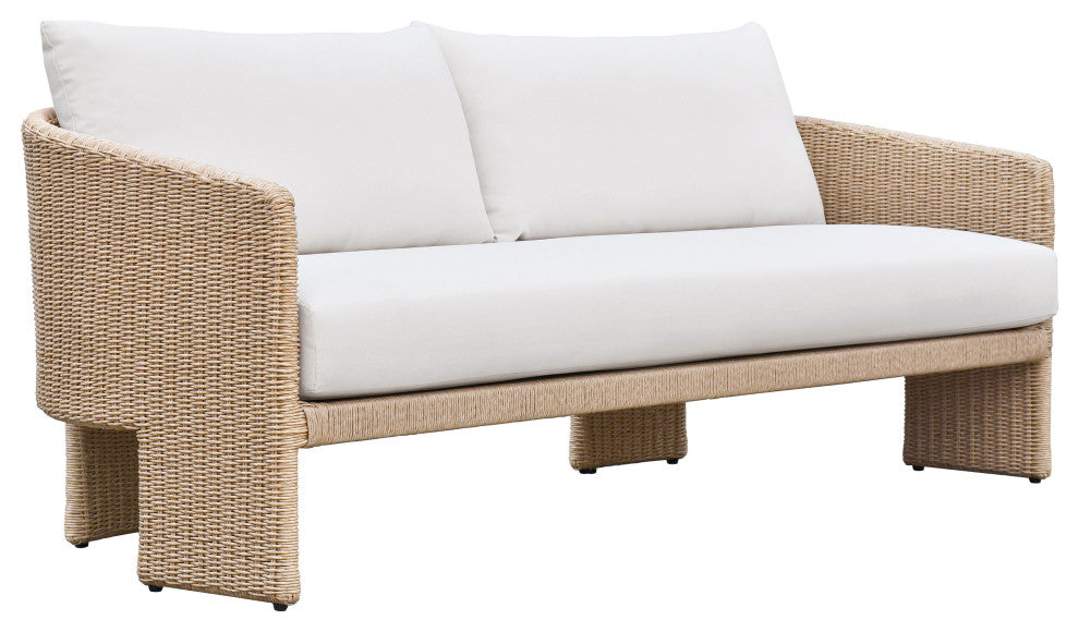 Alexa Rattan Performance Fabric Outdoor Sofa, Cream