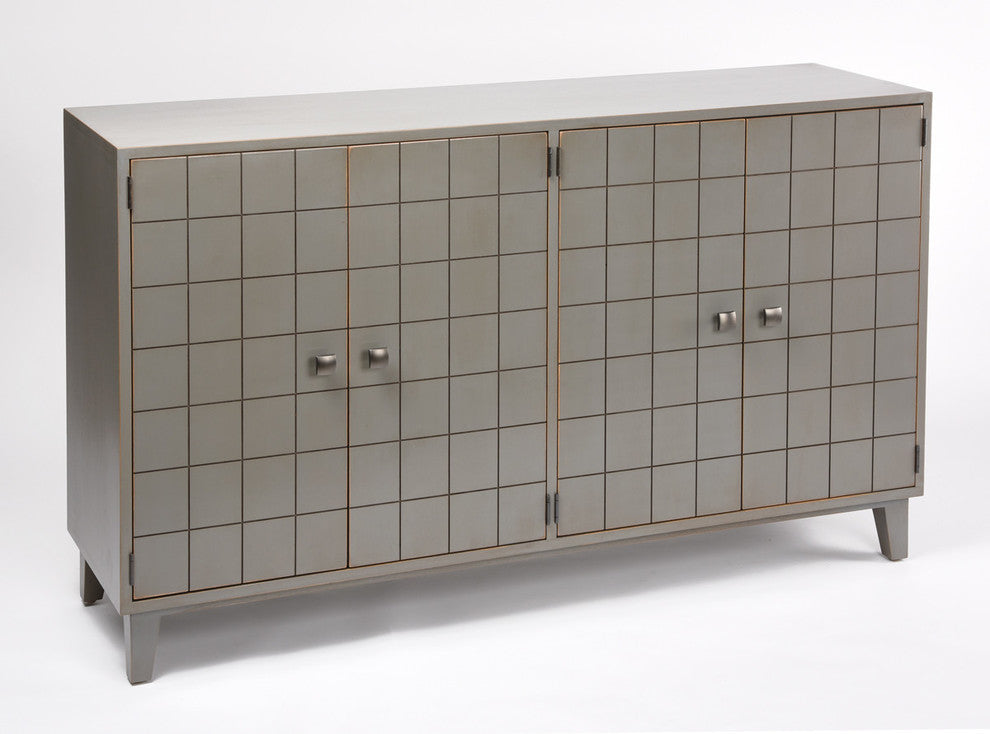 With clean lines and tapered legs, this Alexander Sideboard has a sleek, modern feel. Its two cabinets with adjustable shelves offer ample storage space. Made in USA.