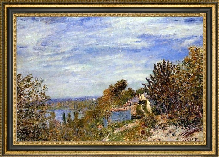 18" x 27" Alfred Sisley Footpath in the Gardens at By framed premium canvas print reproduced to meet museum quality standards. Our Museum quality canvas prints are produced using high-precision print technology for a more accurate reproduction printed on high quality canvas with fade-resistant, archival inks. Our progressive business model allows us to offer works of art to you at the best wholesale pricing, significantly less than art gallery prices, affordable to all. This artwork is hand stretched onto wooden stretcher bars, then mounted into our 3 3/4" wide gold finish frame with black panel by one of our expert framers. Our framed canvas print comes with hardware, ready to hang on your wall. We present a comprehensive collection of exceptional canvas art reproductions by Alfred Sisley.