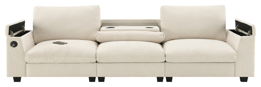 Alice Chenille Sectional Sofa, Bluetooth Speakers & USB Charger, Beige
