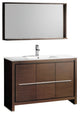 The Fresca 48" Allier is a sleek, modern free standing vanity with plenty of storage space. This model is accented nicely with a matching mirror with small shelf. Optional side cabinets are available. Many faucet styles to choose from.Features: - Dimensions of Vanity: 47.25"W x 18.5"D x 33.5"H - Dimensions of Mirror: 47.25"W x 25.5"H x 6"D - Materials: Plywood w/ Veneer, Ceramic Countertop/Sink with Overflow - Soft Closing Doors/Drawers - Single Hole Faucet Mount (Faucet Shown In Picture May No Longer Be Available So Please Check Compatible Faucet List) - Base Cabinet, Countertop/Sink, Faucet, Mirror, P-trap, Pop-Up Drain and Installation Hardware IncludedThis single hole faucet is made from heavy duty brass with a brushed nickel finish. Features ceramic mixing valve for longevity and watertight functionality. FFT3071BN Faucet Features: - Dimensions: 2.2"W x 5.7"D x 6.8"H - Spout Height: 4.4" - Spout Reach: 4.7" - Finish: Brushed Nickel - Ceramic Mixing Valve - 1/2" - 14 NPS Connection - All Mounting Hardware Included