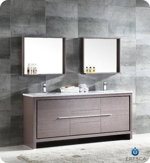 Allier 72" Gray Oak Modern Double Sink Bathroom Vanity, Faucet, FFT1030BN