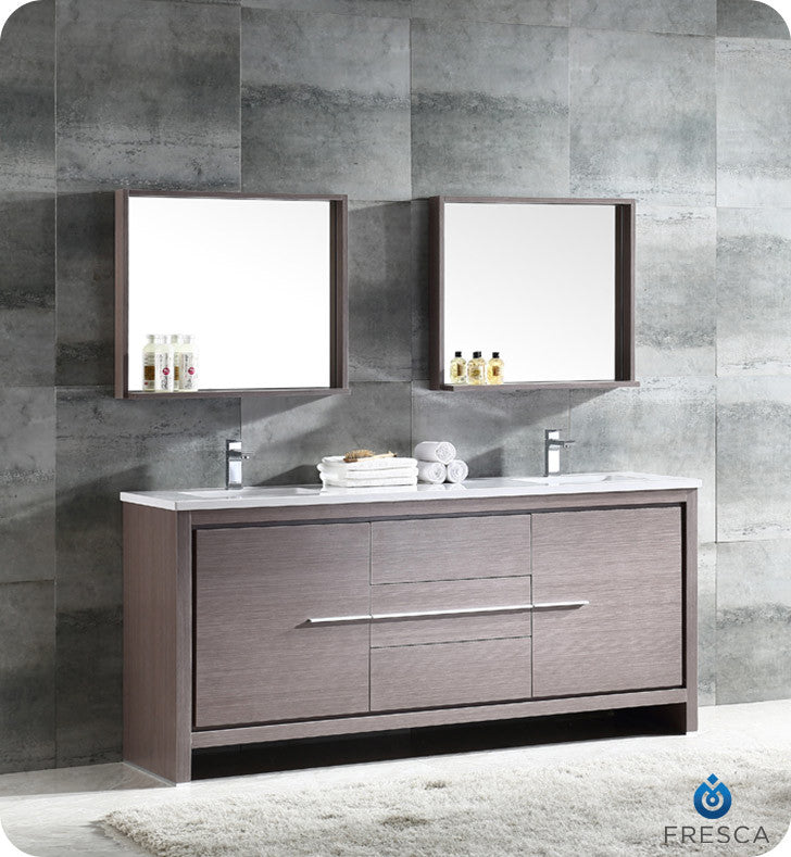 Allier 72" Gray Oak Modern Double Sink Bathroom Vanity, Faucet, FFT9161BN