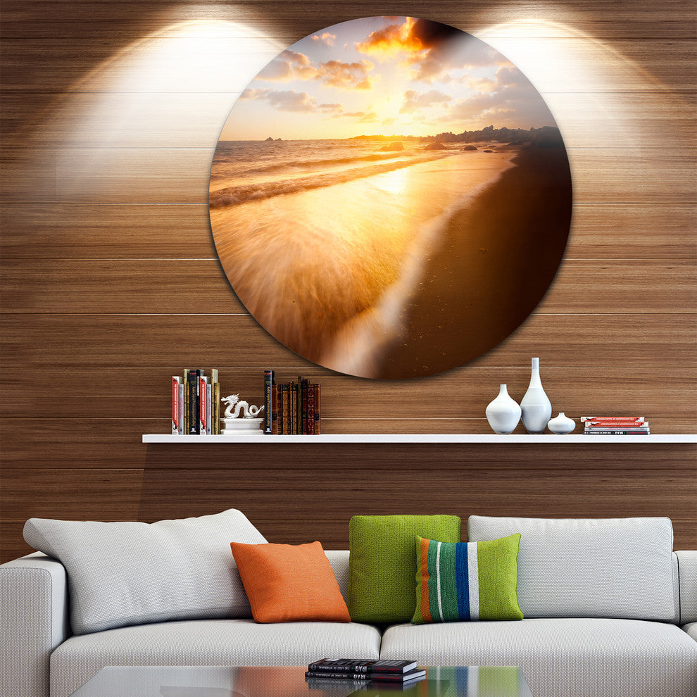 Bring Contemporary Abstraction to your home with this large Circle Metal wall art. This Amazing Sunrise Over Australian Beach Metal Artwork makes it the focal point of any room or office.