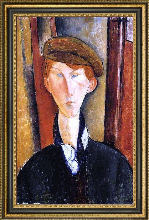 Amedeo Modigliani Young Man with Cap - 16" x 24" Framed Premium Canvas Print