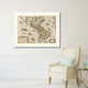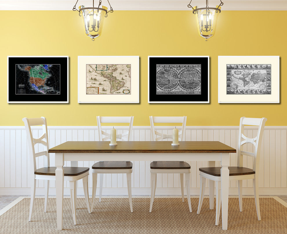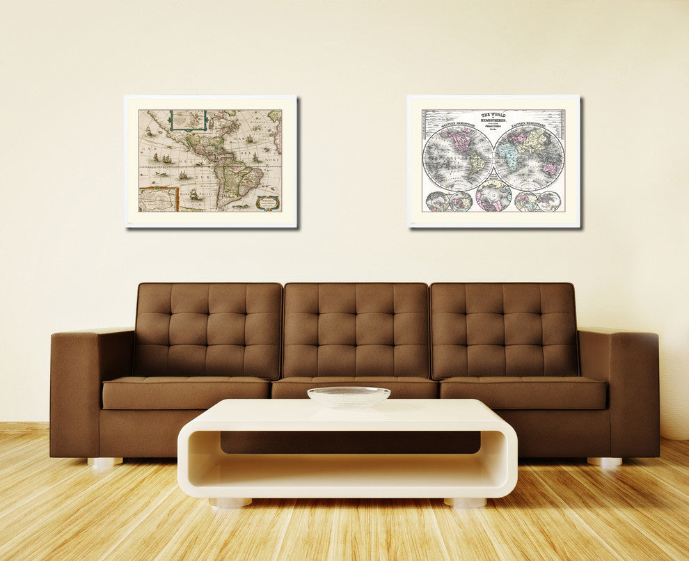 America Old Map Print On Canvas With Picture Frame Art Collection 16" X 21"