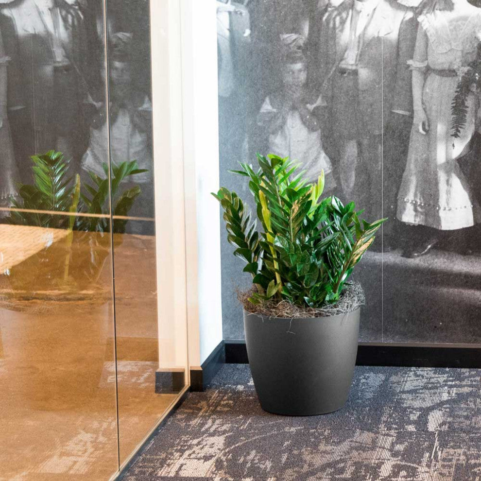 American Essence Memphis Modern Medium Indoor Plastic Round Planter, Charcoal Metallic, 13
