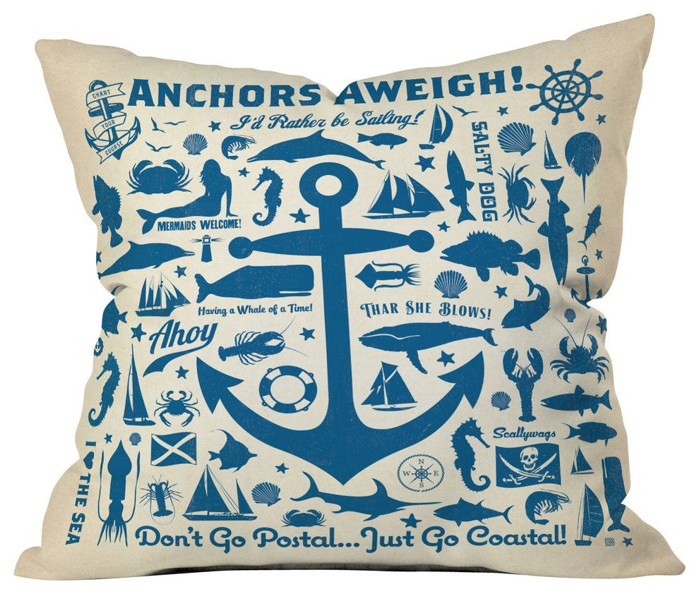"Anchors Aweigh" Outdoor Throw Pillow, 26"x26"