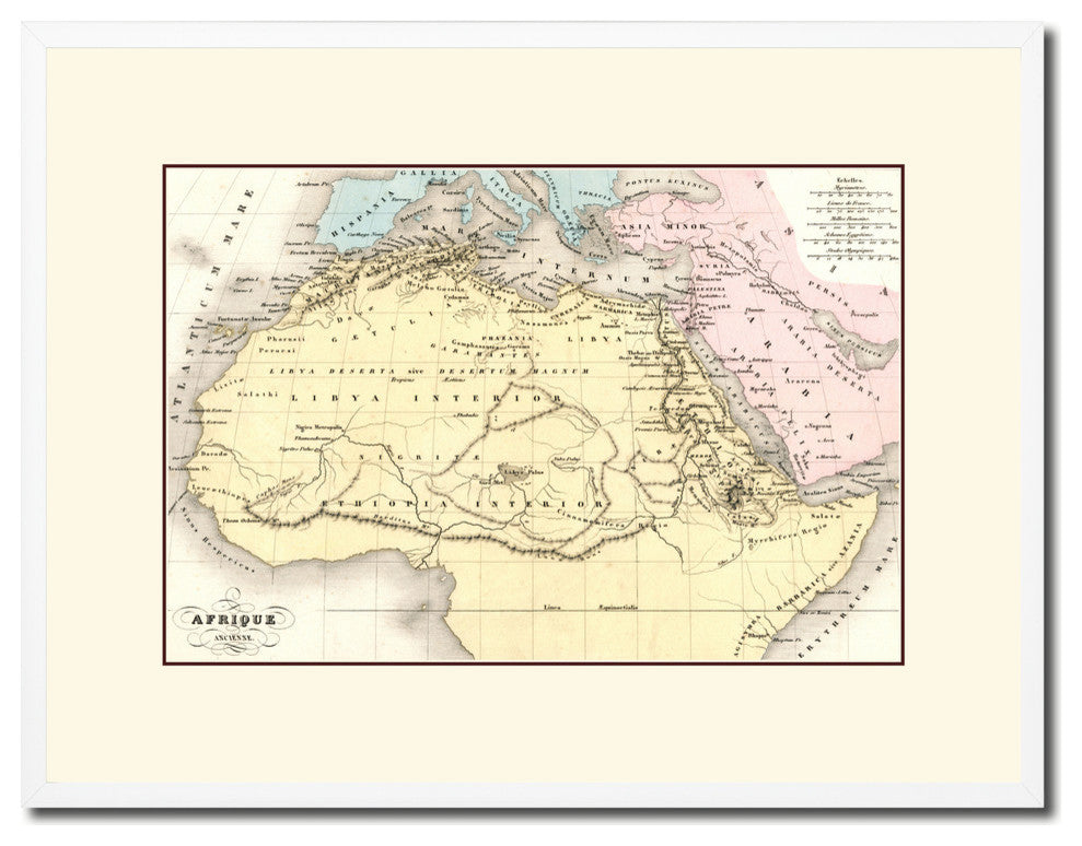 Ancient Africa Old Map Print On Canvas With Frame Art Collection 16" X 21"