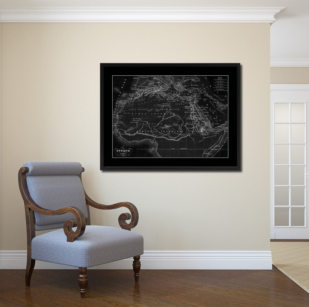 Ancient Africa Vintage Monochrome Map Canvas, 28"x37"