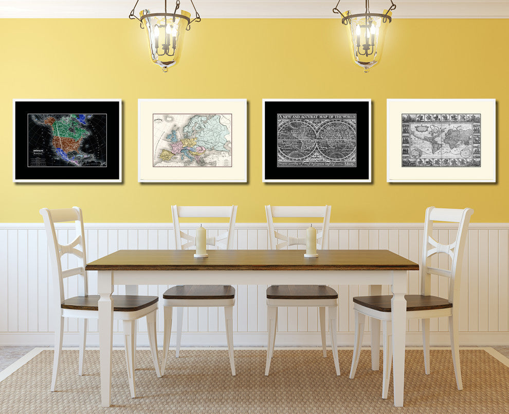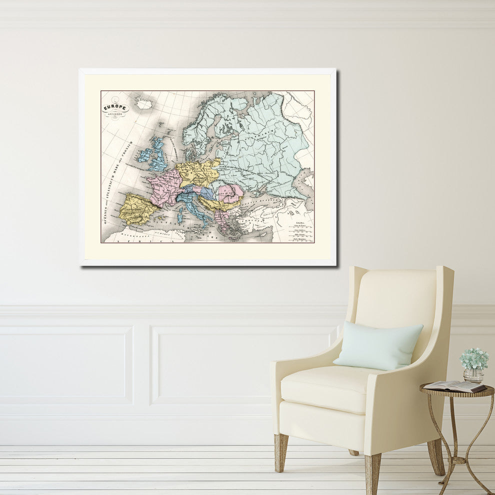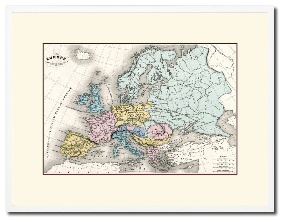 Ancient Europe Old Map Print On Canvas With Frame Art Collection 16" X 21"