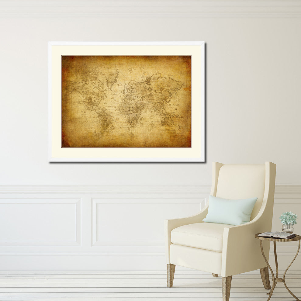 Ancient World Old Map Print On Canvas With Frame Art Collection 16" X 21"