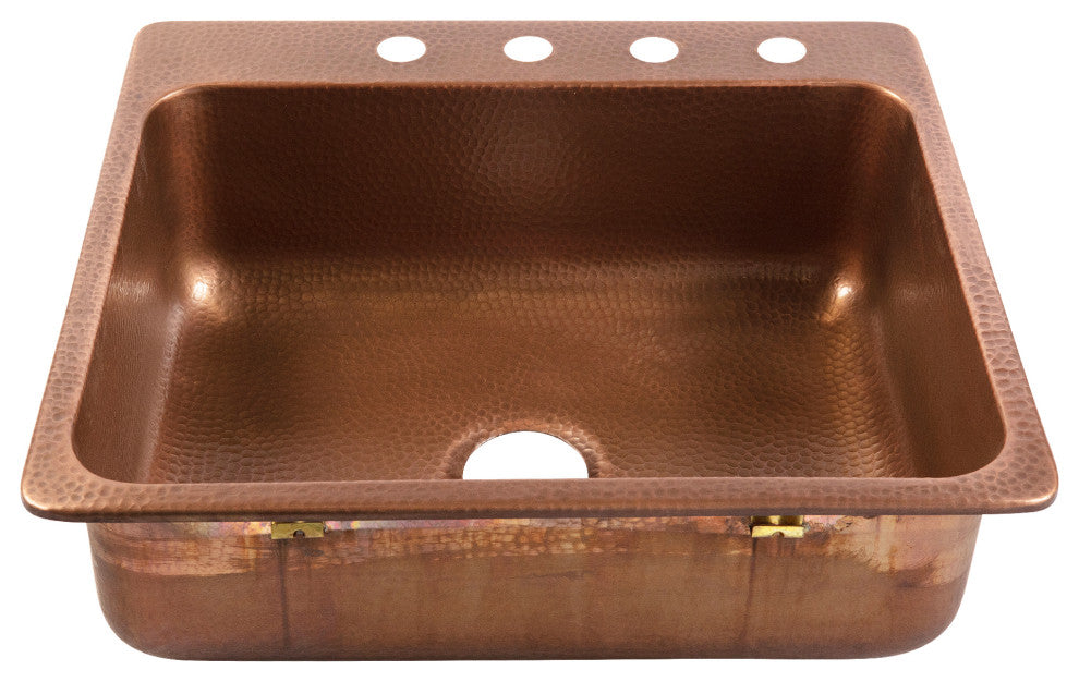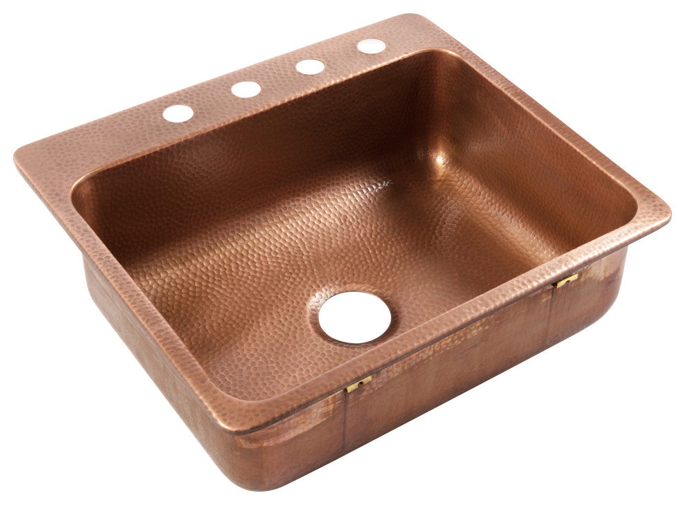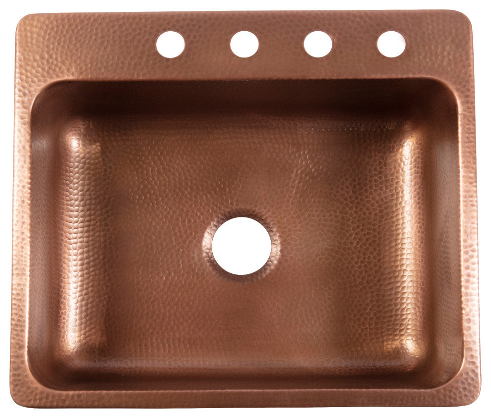 Angelico Copper 25" Single Bowl Drop-In Kitchen Sink With 4 Holes