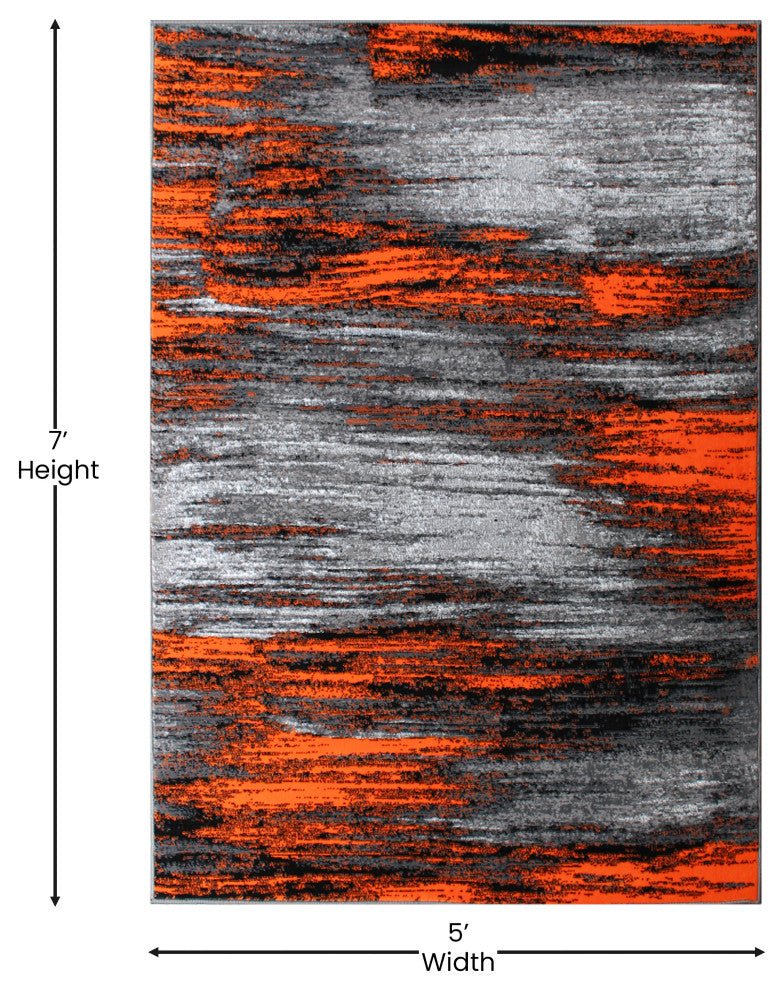 Angie Collection Rectangle 5' x 7' Scraped Design Area Rug, Orange