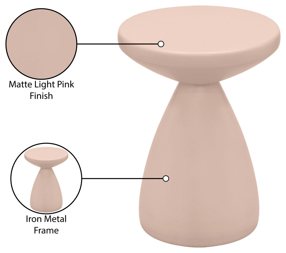 Indulge in the allure of the Pink Iron Anika Side Table by Meridian Furniture. Its captivating design and luxurious Pink Iron elevate any space with effortless elegance. Crafted with precision and durability in mind, this stunning piece becomes the focal point of gatherings, fostering moments of connection and warmth. Embrace sophistication and style with the Anika Side Table, a testament to exquisite taste and timeless beauty.Overall Product Dimensions: 14.5" W x 14.5" D x 19" HMatte Light Pink FinishIron MetalContemporary Design