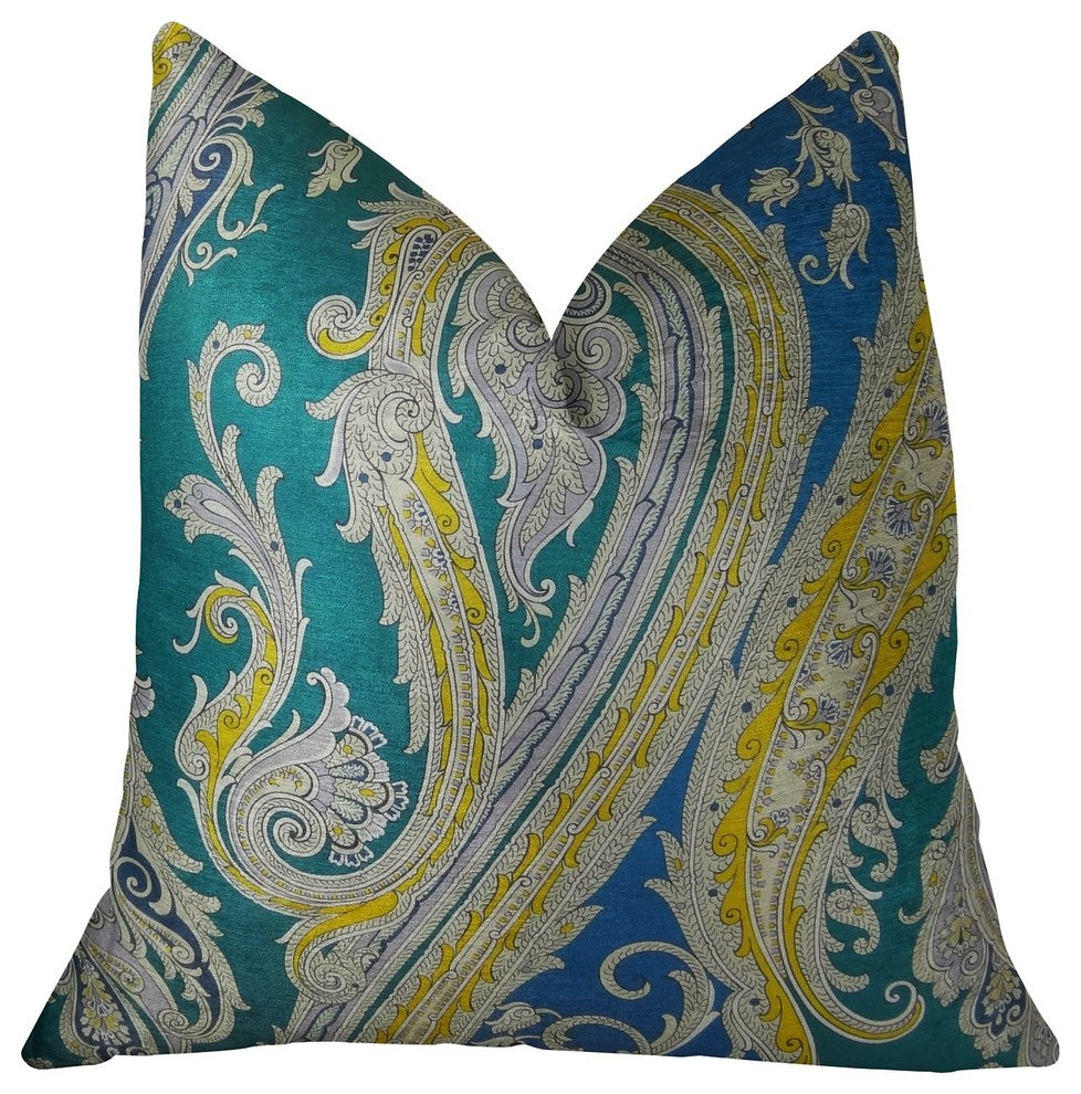 This chic and classy decorative throw pillow is the perfect way to add a flourish of color to your space. The stunning design makes this plutus annalise blue yellow and green handmade luxury pillow. The fabric is a blend of Cotton.