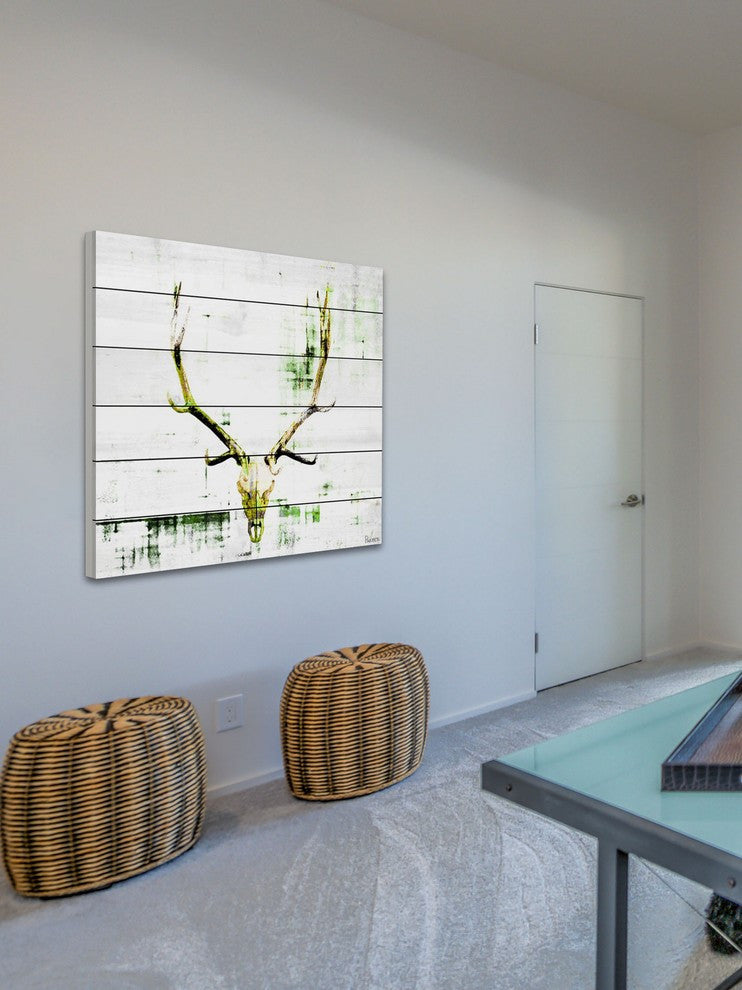 Striking and unique, the "Antler" Print on White Wood by Parvez Taj will bring your walls to life. Printed on white wood, this 32 inch wide by 32 inch tall eclectic artwork will make a statement in any living room, dining room, or bedroom.- Fine art UV ink print on white wood by Parvez Taj- wood pieces are hand-selected by Fine craftsmen for printing- Arrives ready to hang- Includes a certificate of authenticity- Artist signature on the front