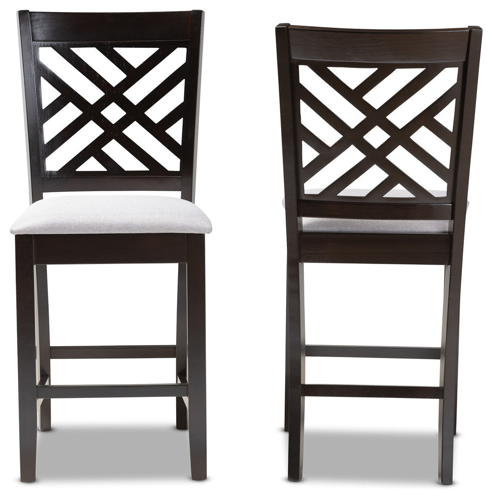 Antonia Gray Fabric Espresso Brown Finish Counter Height Pub Chairs, Set of 2