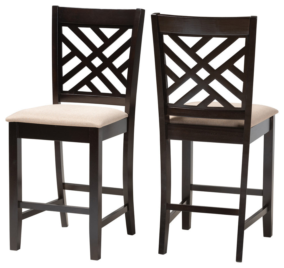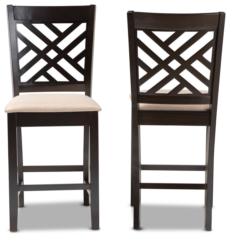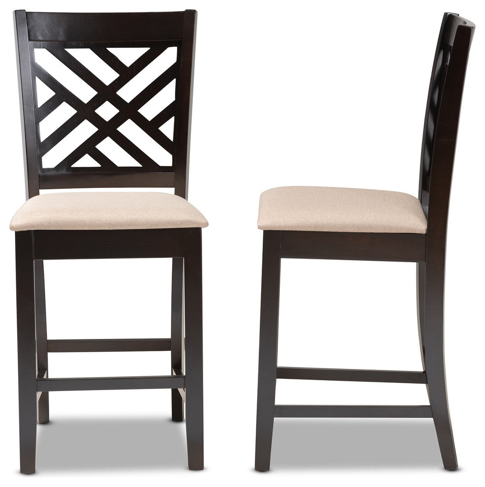 Antonia Sand Fabric Espresso Brown Finish Counter Height Pub Chairs, Set of 2