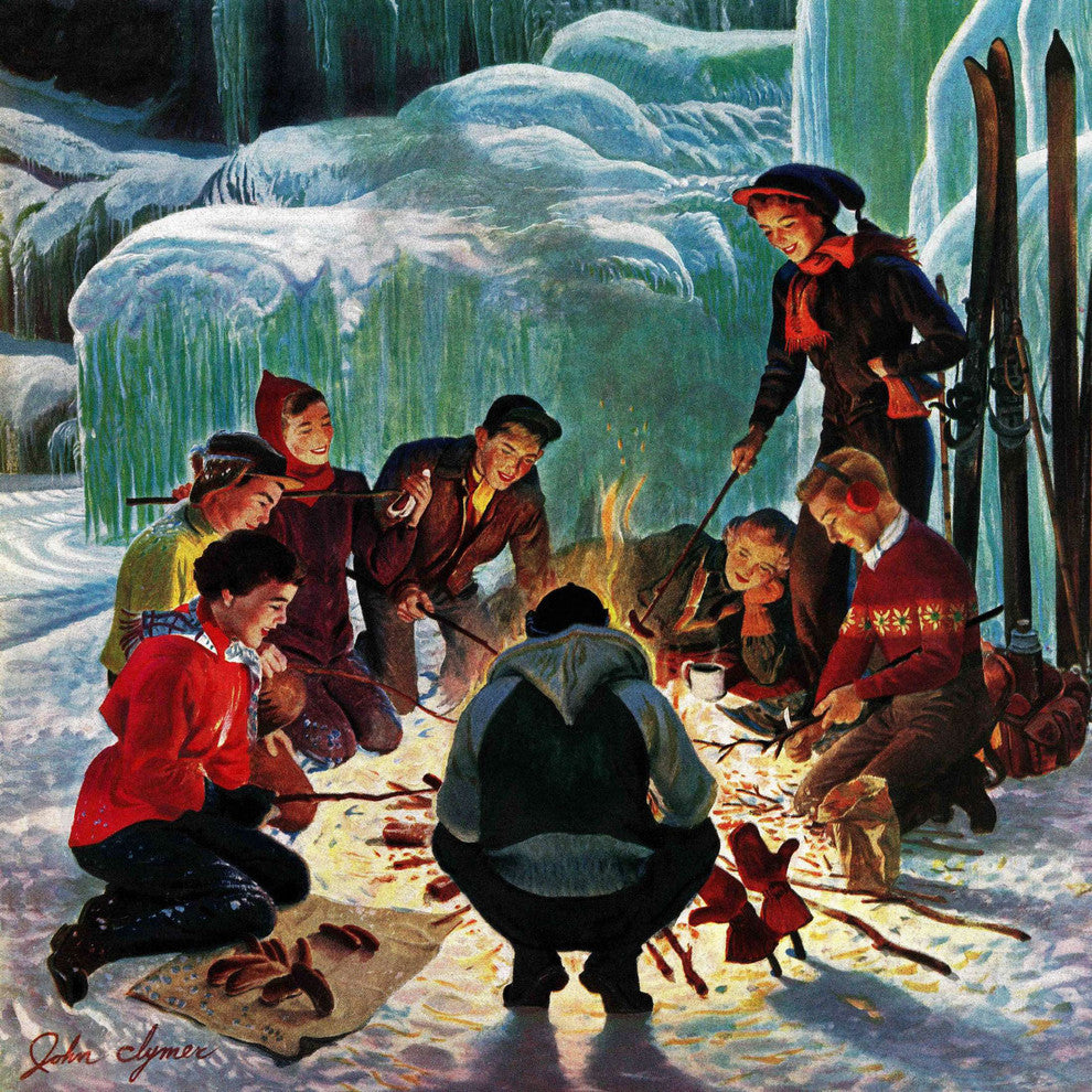 "Apres Ski Bonfire" Painting Print on Canvas by John Clymer