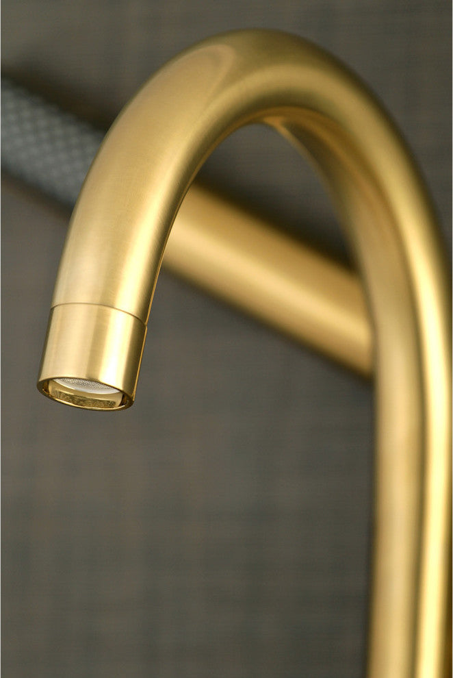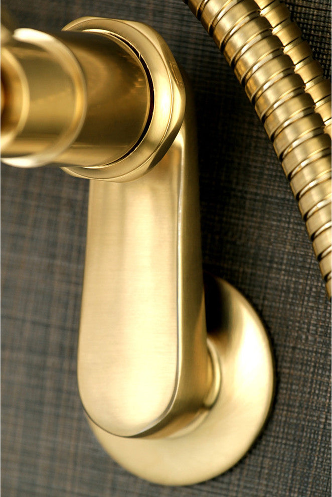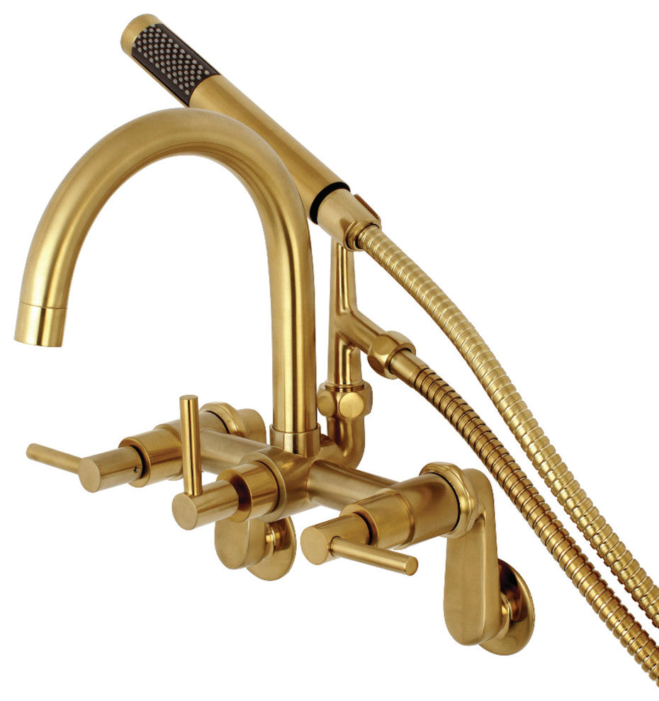 Wall mount clawfoot tub faucets are the perfect fixture to add decorative flair within your bathroom because of their unique architectural elements. With sleek design, this will complete your refined bathroom decorum with the help of its premium satin brass finish and contemporarily styled handheld shower. The solid brass construction also makes for a heavy, quality made product.