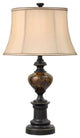 Standard Lamp Specifications for #FM985:Product Type: Table LampHeight: 28"Finish: Madison Bronze and Dark GoldenrodConstruction: Steel/GlassSocket: (1) Aluminum 3-way Med. Base Type A 150W Max socket(s). (Bulb(s) not included)Switching: (1) 3-way turn knob switch(es) located on the socket.Cord: 6''5'' (from base) long black SPT-2 cord set with a 2 prong polarized plug.UL/CUL and/or ETL listed: YesHarp Size: 8 inches (including the saddle)Standard Packing: 2 per carton (shade packed separately).Lamps & Shades per SKU: 2Lamping: (1) Aluminum 3-way Med. Base Type A 150W Max socket(s).Shade Size and Description: Cream Silk Drum bell shade with Dark Gold underfold trim measuring 12" x 16" x 10" w/ .5" drop (Top x Bottom x Slant).Bulb Included: NoMaterial Description: constructed from polished, plated, and lacquered steel.