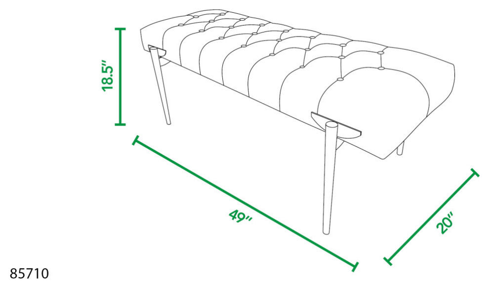 The Aria Accent Bench by Jennifer Taylor Home is a glamorous statement that is perfect wherever you need additional seating. The performance velvet upholstery is durable and soft, great for homes with kids and pets, and is complemented by the satin gold legs. Use this bench as a dining banquette to complete your dining set, or as a cocktail ottoman in your living room, or in your bedroom at the end of your bed.Features:- Handmade by master furniture craftsmen for the highest level of quality- Sturdy frame of kiln-dried solid birchwood and layered plywood provides excellent support and stability- Upholstered in performance velvet atop a high-density foam cushion for a medium-firm feel- Seat is hand-tufted for a crafted, detailed look- Add an element of glam with the satin gold legs- Great in the living room, entryway, or bedroomDetails:- Dimensions: 49"W X 21"D X 18.5"H- Weight: 52LBS- Weight Capacity: 400LBS- Number of Shipping Boxes: 1- Assembly required- Care Instructions: Spot clean only / cleaned using a soft brush