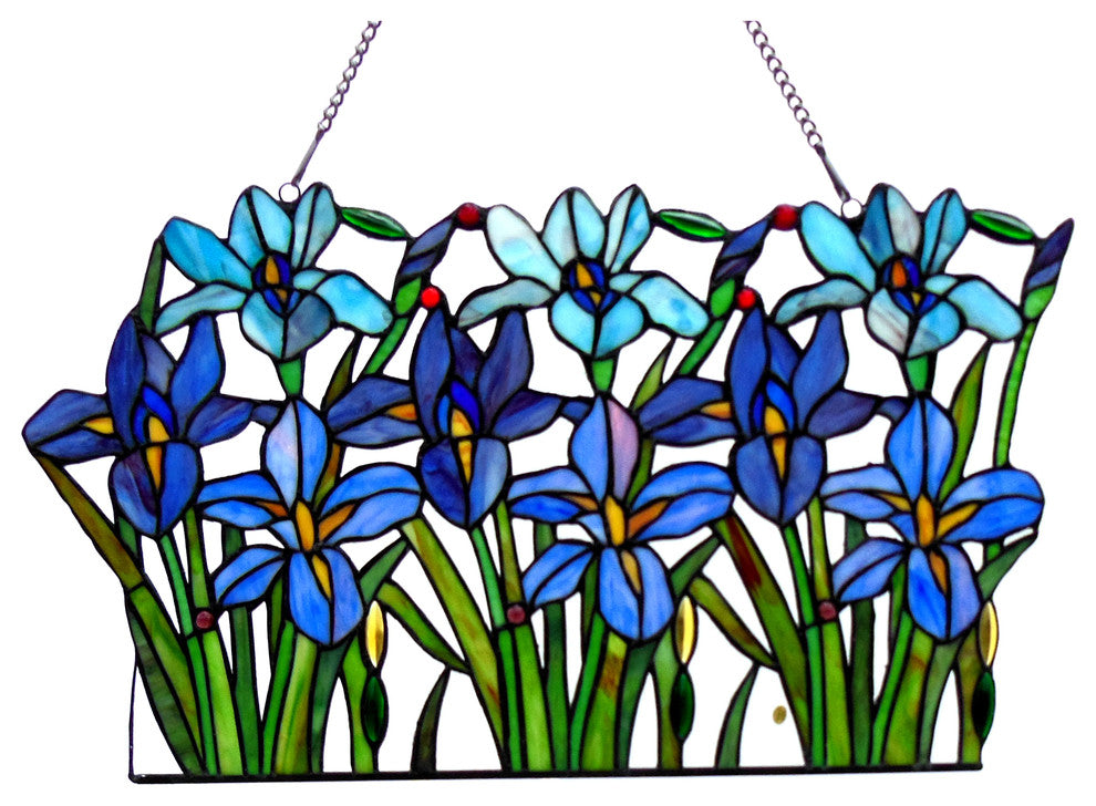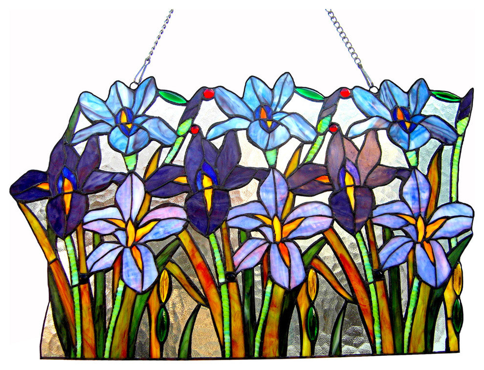 ARIANA Tiffany-glass Iris Window Pane 24' Wide