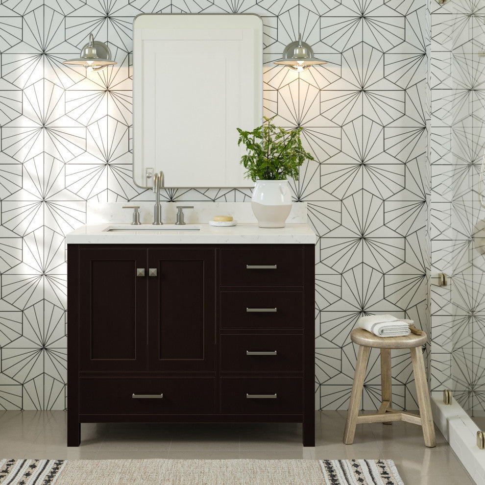 Ariel Cambridge 42" Left Single Rectangle Sink Vanity, Carrara Quartz