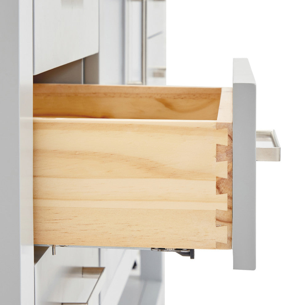 The Magnolia bathroom vanity constructed with a hardwood frame and dovetail drawer boxes, this vanity is sure to last and stand the test of time. Featuring an open storage space below double door soft-closing cabinets and fully extendable self-closing drawers, this vanity is the ideal combination of function and form at its highest level.- Covered under Ariel''s 3 year limited warranty- 42.25"W x 22"D x 36"H- Hardwood frame with plywood panel construction for lasting beauty and durability- Grey painted finish- 2 soft-closing doors with adjustable hinges so you''ll never have to worry about hearing a door slam- 6 full extension, self-closing drawers to meet all your storage needs- Dove-tail construction drawer boxes for additional strength and stability
